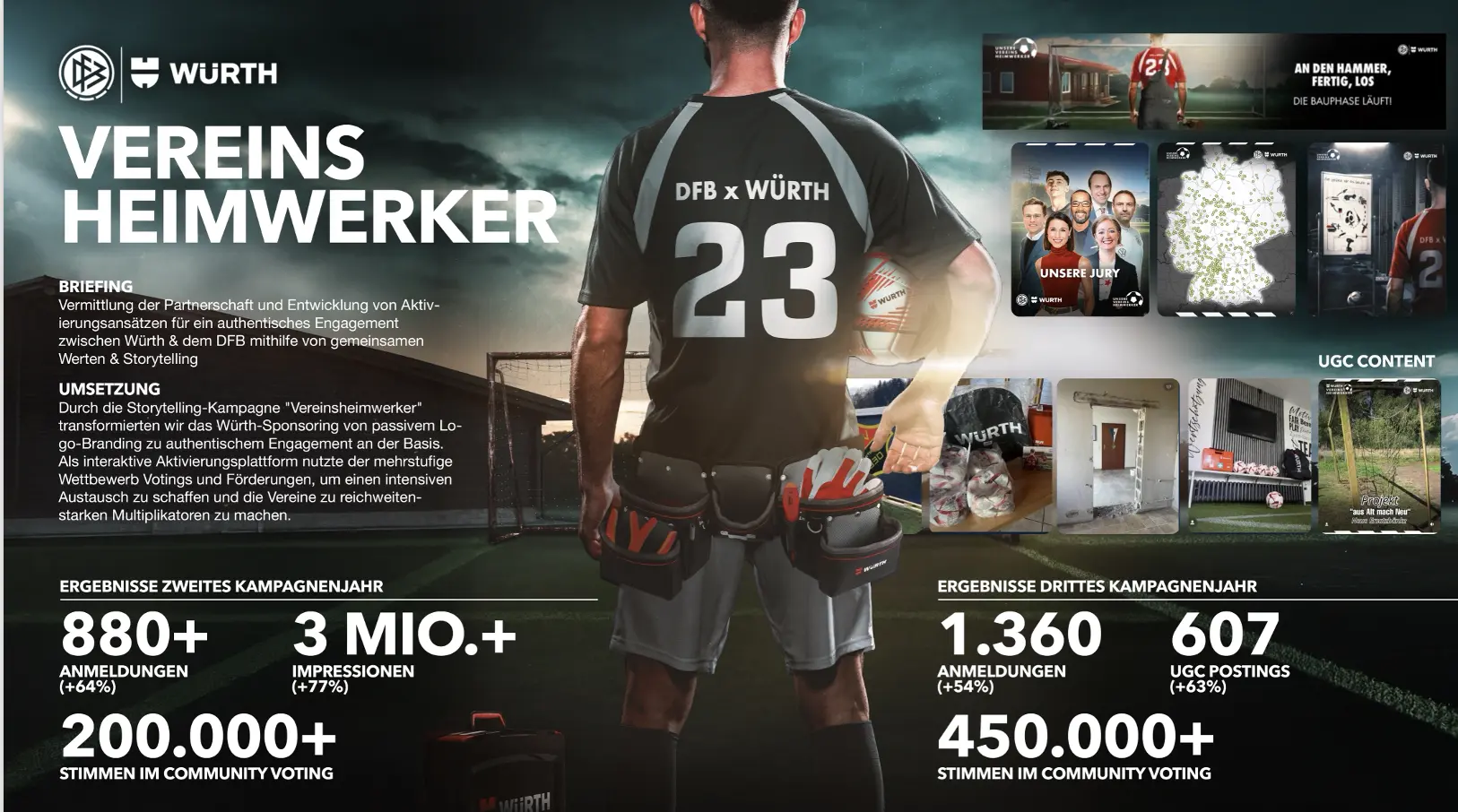 Die Kampagne „Vereinsheimwerker“ von Würth zeigt exemplarisch, wie ein passgenaues Konzept Relevanz schafft – mit echtem Produktbezug, Community-Nähe und hohem Nutzwert. „Vereinsheimwerker“ ist ein Best‑Practice‑Beispiel für ein Aktivierungsformat, das konsequent auf Zielgruppe und Produktnutzen zugeschnitten ist. Motto: Community-first statt Gießkanne.