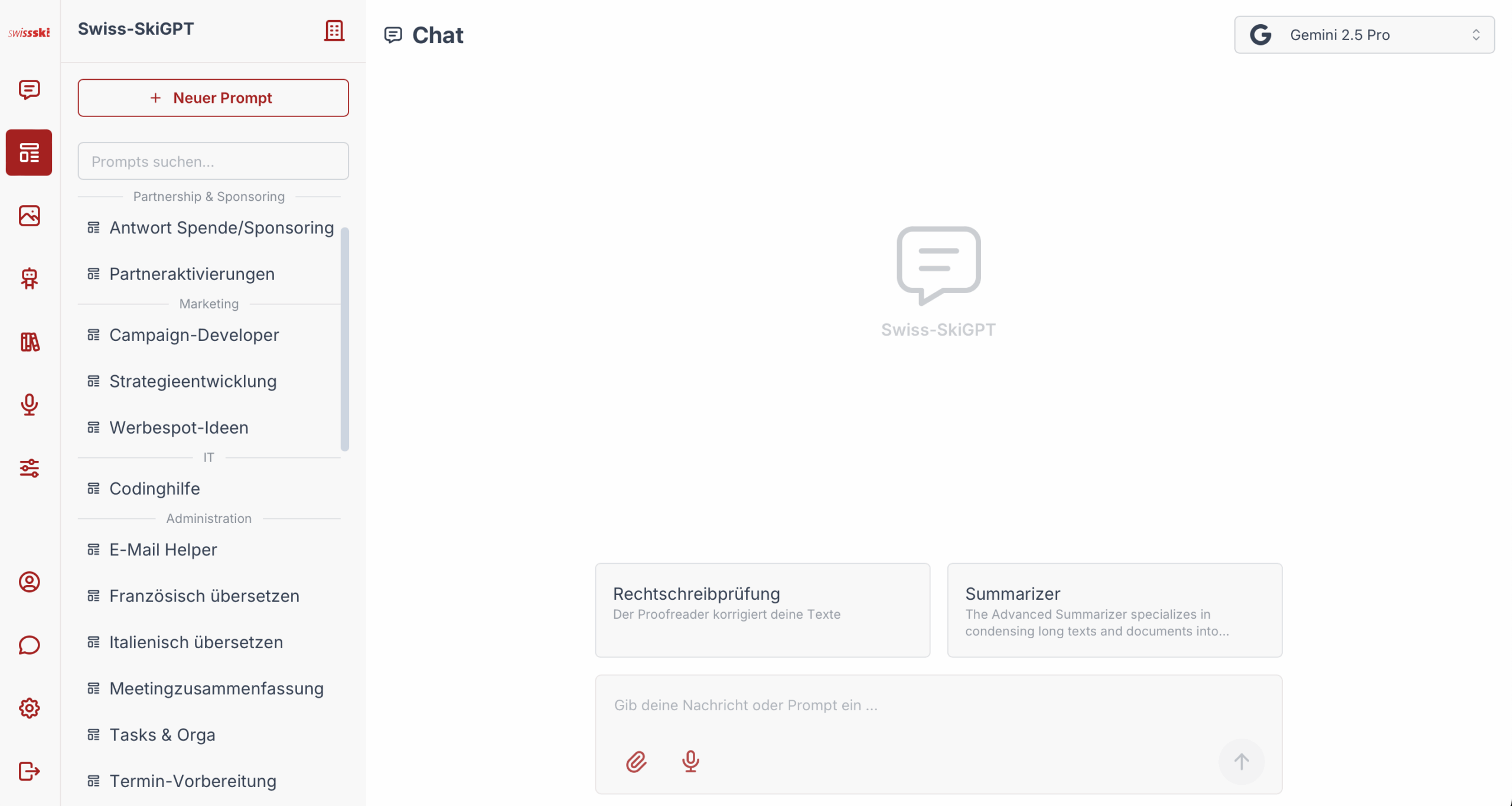 Mehr als 100 geschulte Mitarbeitende generieren monatlich ca. 2500 Anfragen. Massgeschneiderte Prompt-Templates, Assistenten & Wissensdatenbanken für alle Abteilungen sorgen für massive Zeitersparnisse bei der Content-Erstellung, bei Übersetzungen sowie der Planung von Werbeprojekten und Trainings.
